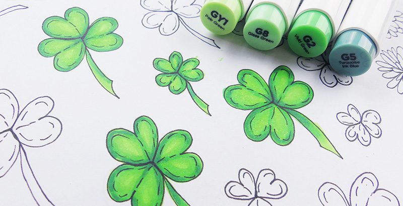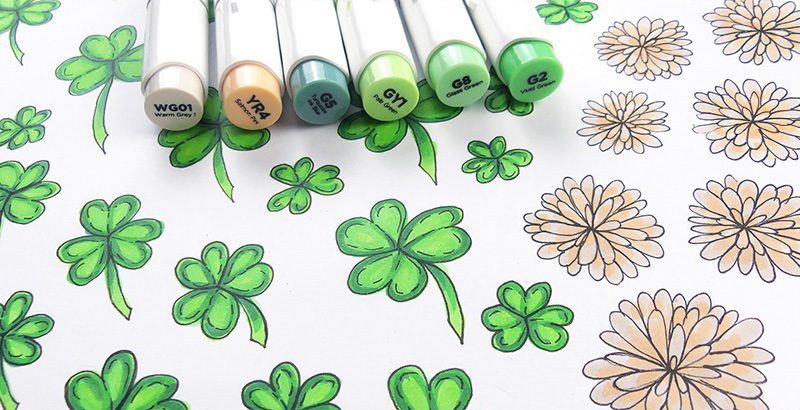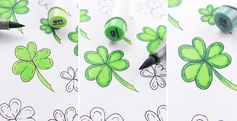 To color in the clover flowers, I used the light grey Ohuhu marker to create a base layer and then added in the brown marker to create some shadows.