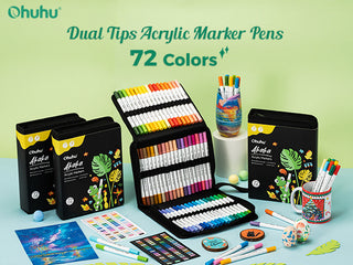 Ohuhu acrylic paint pens set features 72 stunning hues with even distribution and smooth transitions, perfect for a variety of painting and writing styles. With exceptional coverage and color performance, these paint pens deliver brilliant shades that stand out even on black backgrounds.