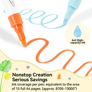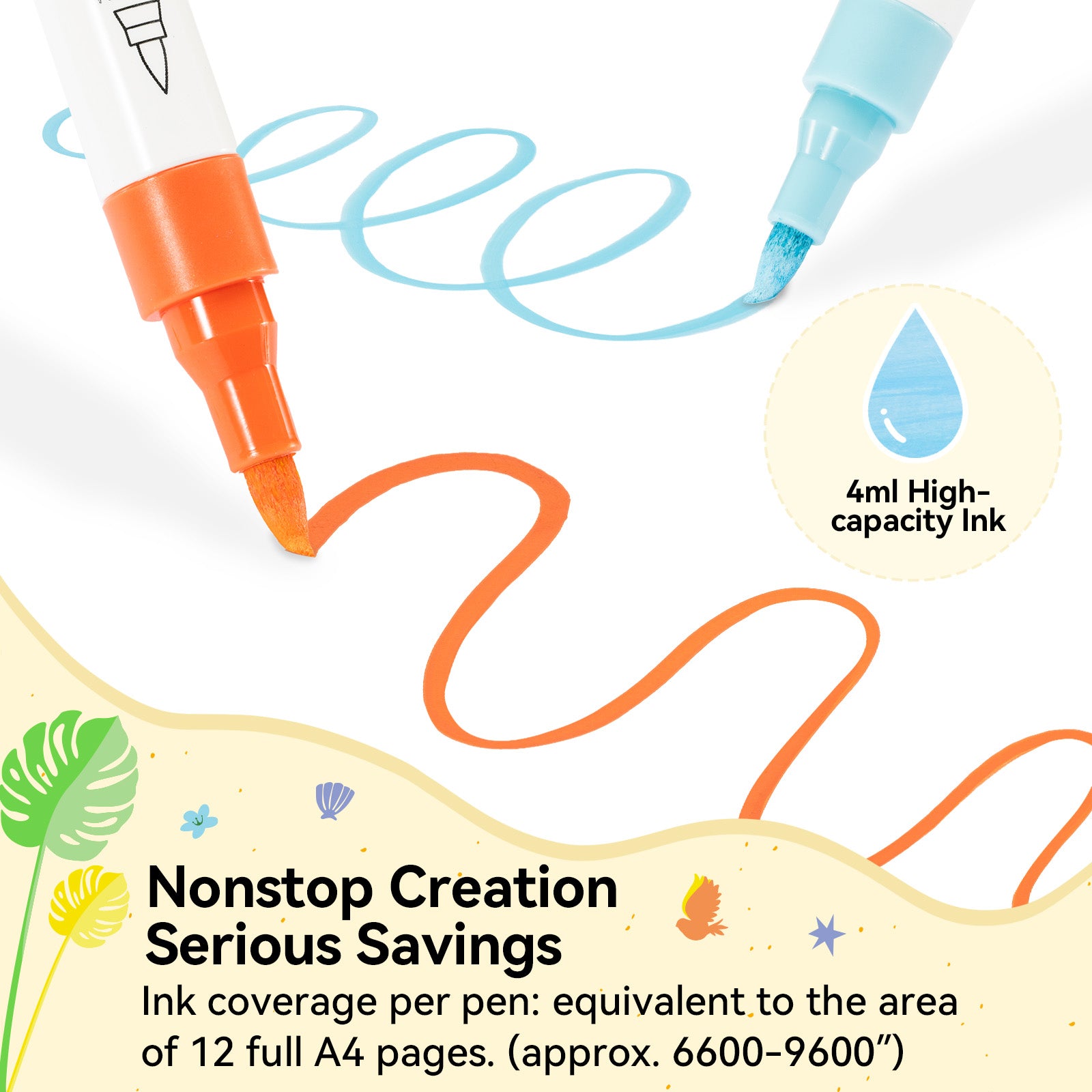Packed with 4ml of high-capacity ink, each Ohuhu paint markers delivers extreme performance, like drawing a 2-football-field line (6,600 - 9,600 in) with the brush tip, so you can create without stopping and save money on replacements.