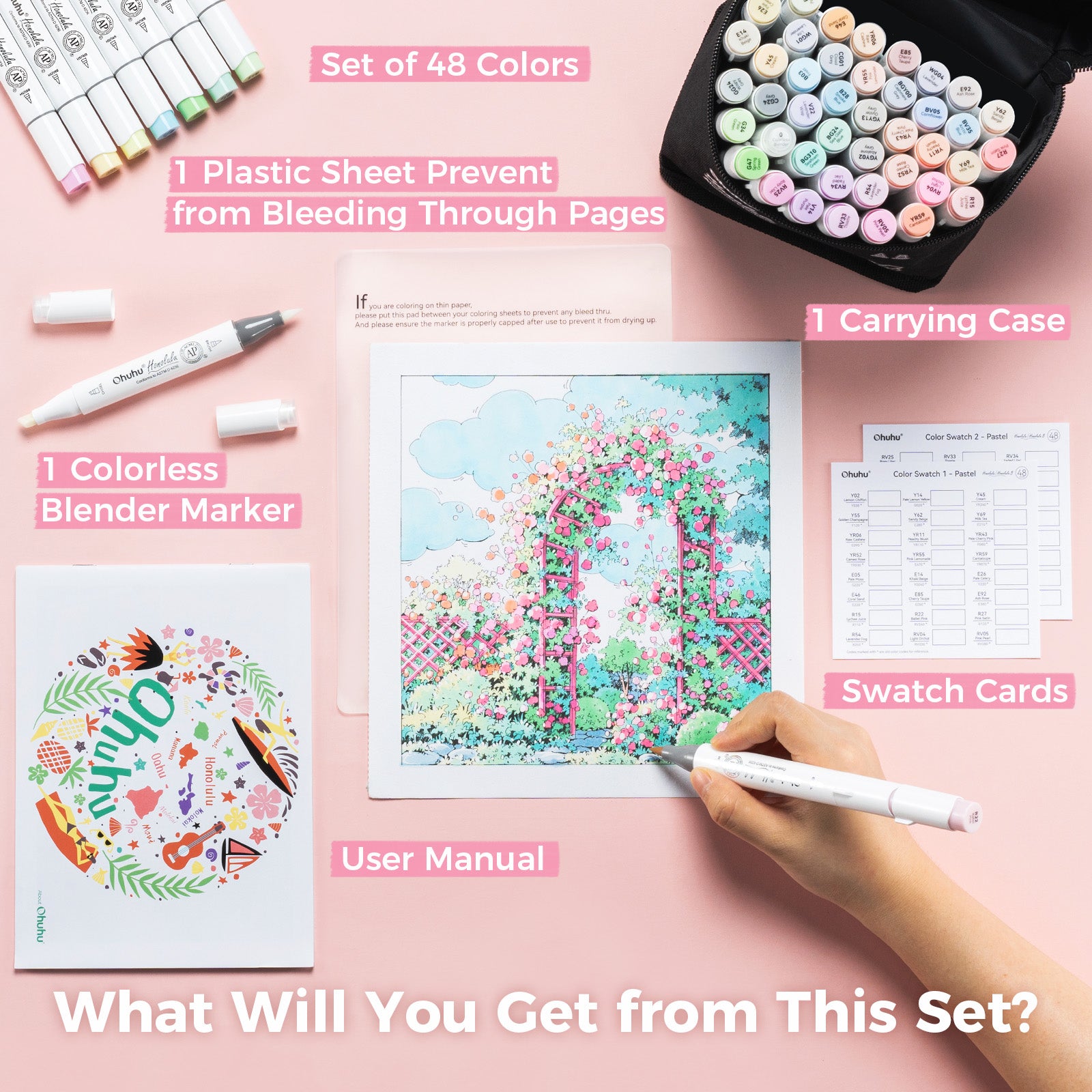 Ohuhu Honolulu 48 Pastel Colors Dual Tips Alcohol Art Markers-Sweetness