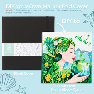 This sketchbook features a special PU leather cover that lets you customize it with stickers, paintings, or drawings. (NOTE: Only acrylic markers can be used on the PU leather cover, not alcohol markers.) Unleash your creativity and design your own unique marker sketchbook!
