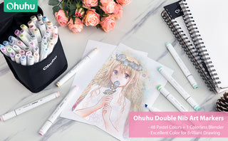 Ohuhu Oahu 48 Pastel Colors Dual Tips Alcohol Art Markers, Fine & Chisel