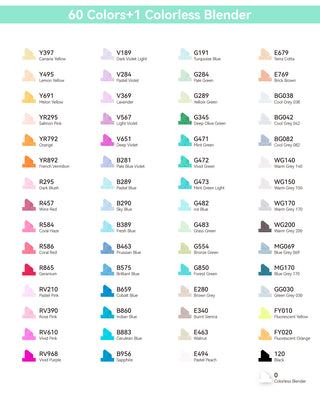 60 Unique Vibrant Colors + 1 Colorless Blender