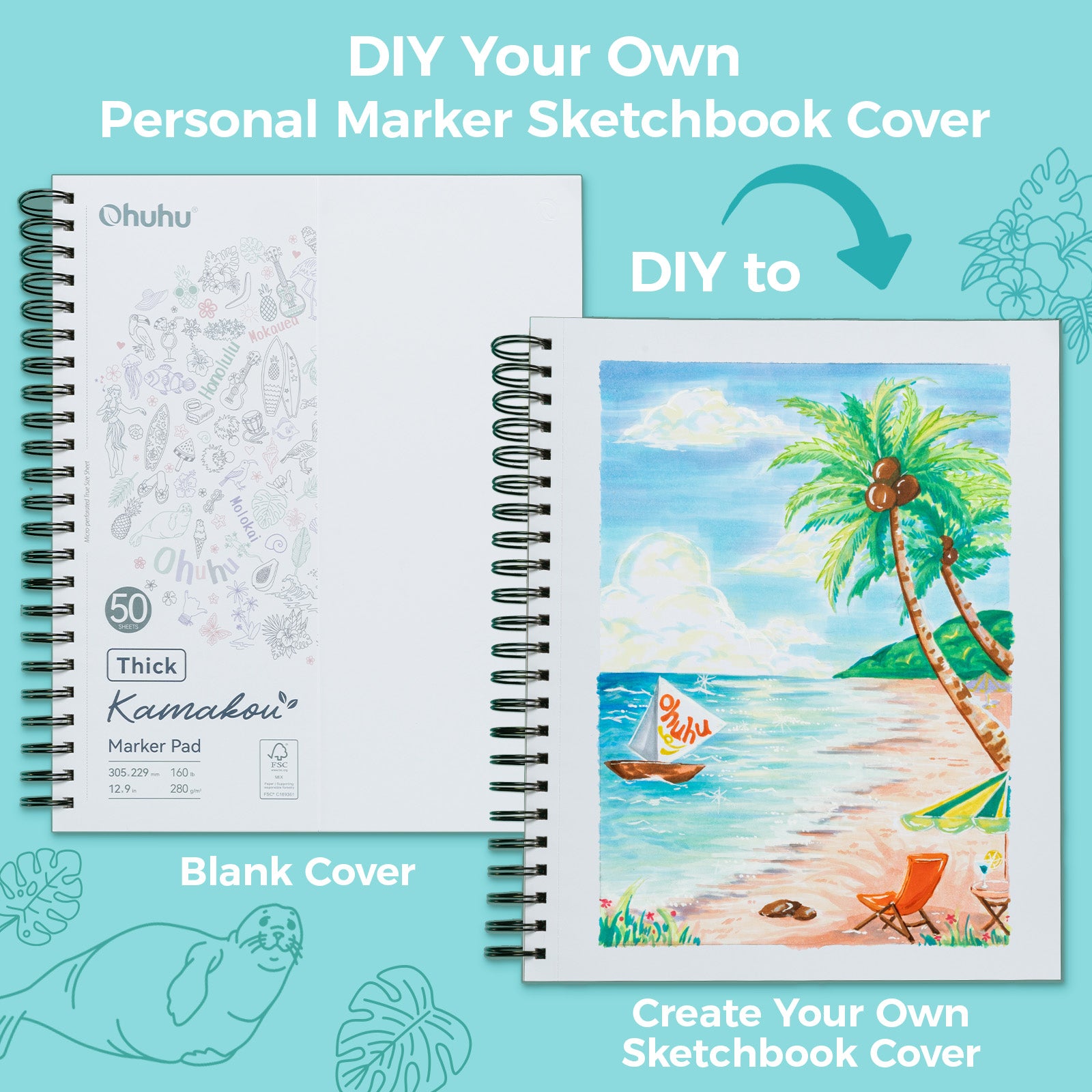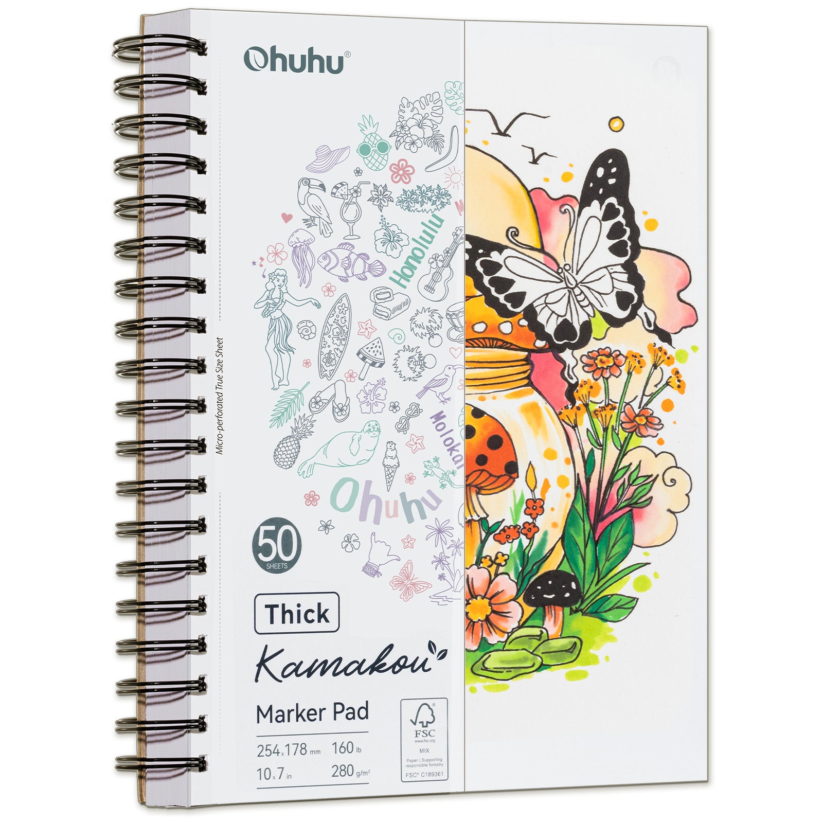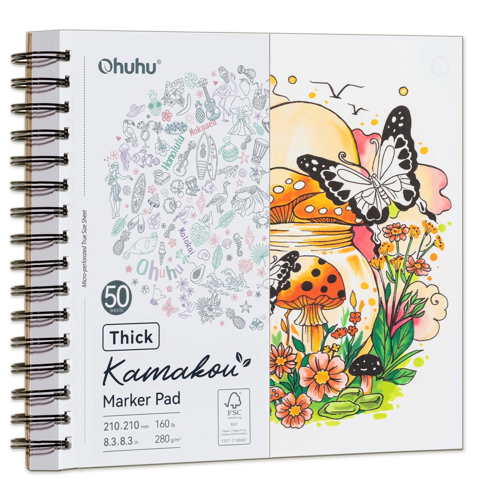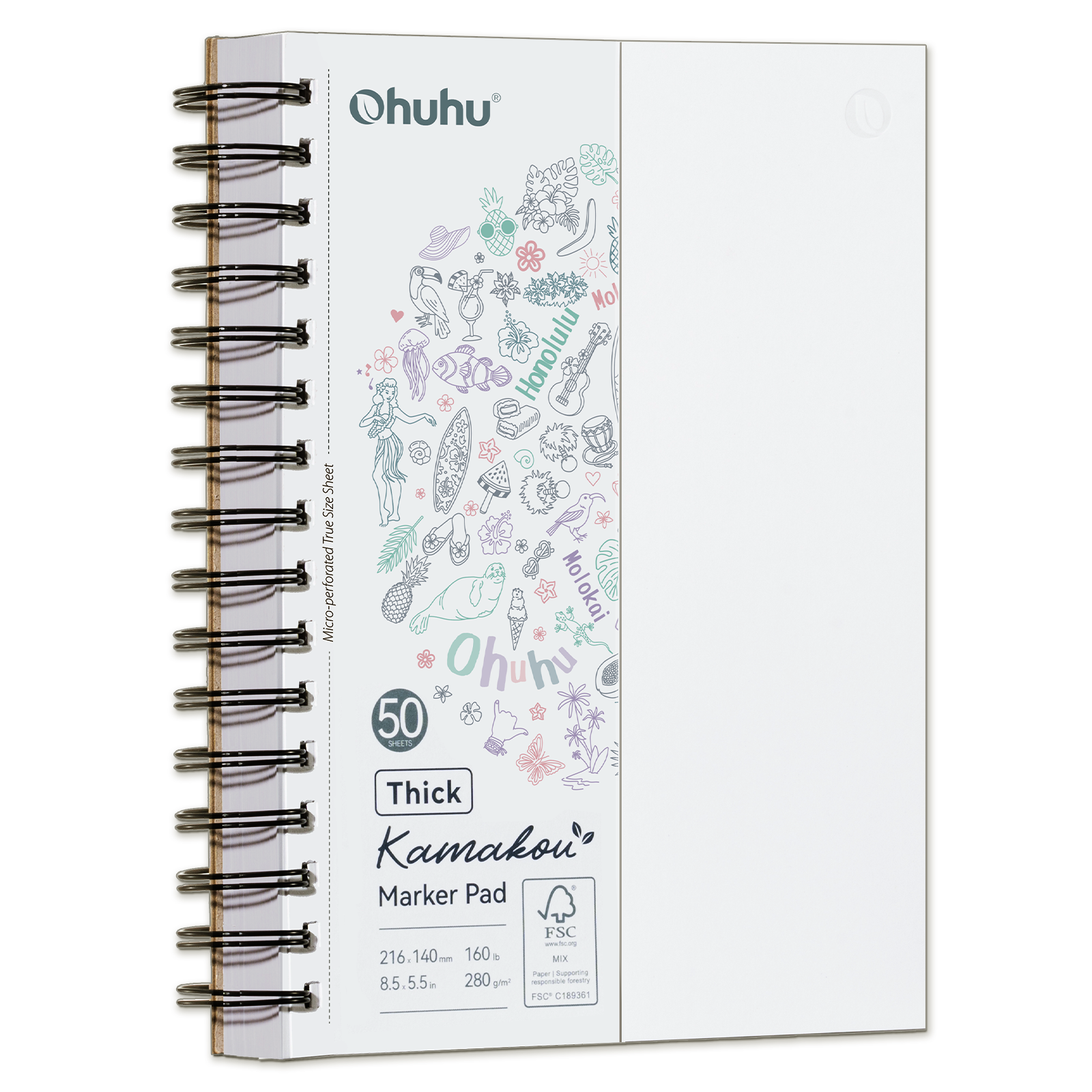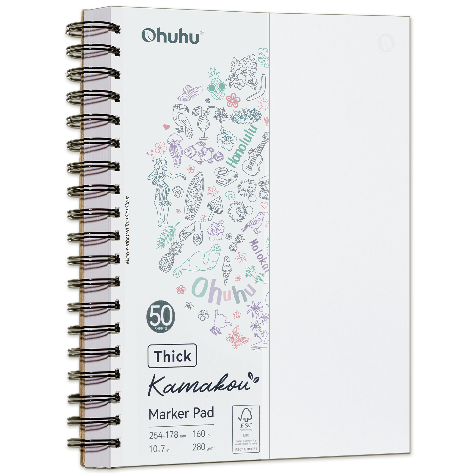 Ohuhu Heavyweight Bleedproof Double-Sided Marker Pad, Spiral-Bound - Kamakou