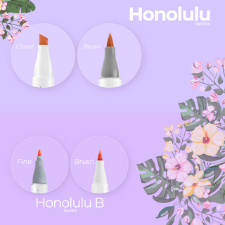 Honolulu B: Perfect for beginners, featuring a round ergonomic design with flexible brush and fine double tips.