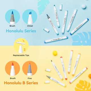 Each marker features a dual-tip design — a brush tip for sweeping, calligraphic strokes and a fine tip for precise detailing, or a wide chisel tip for quickly coloring large areas. Plus, now Ohuhu replacement brush tips is available, so you can easily replace the worn-out tips to ensure consistent and precise lines whenever you create. The only limit is your imagination.
