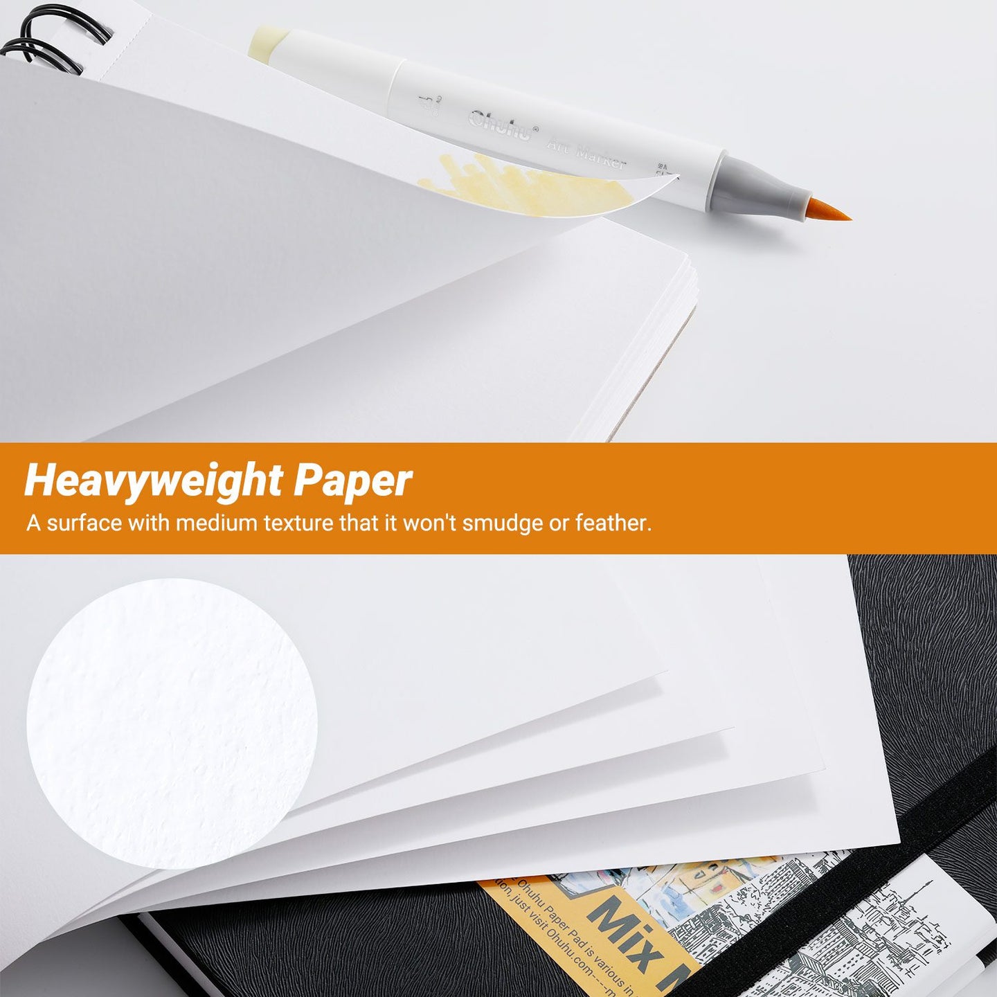 It's the perfect combo of durable and delicate. This 120LB (200GSM) heavyweight paper has a smooth, flat surface that prevents bleeding, smudging and feathering for clean artwork.