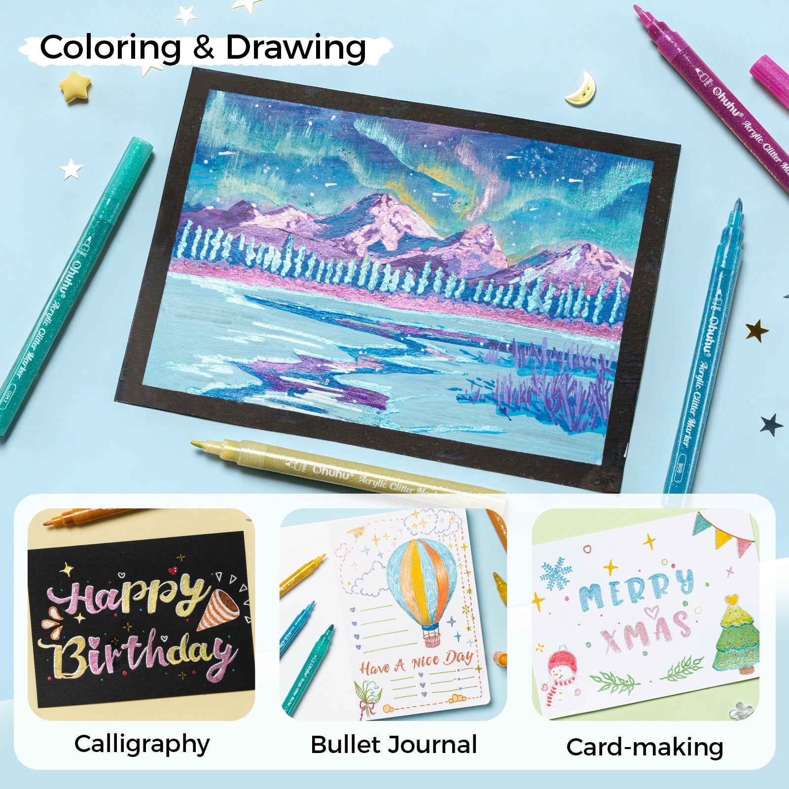 Perfect for gifts, calligraphy, bullet journaling, coloring, drawing, and card-making—add a touch of shimmer to every creative idea.